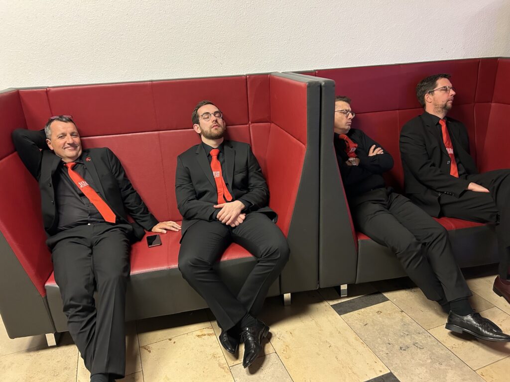 Nach Aufbau, Einspielen, Anspielen und „Verkleiden“ sind die Musiker schon vor dem Spielen erschöpft…
