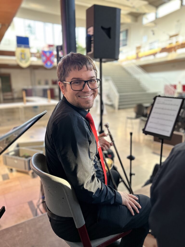 Julian Stelzer bei der Anspielprobe – die Stimmung ist auf jeden Fall da!